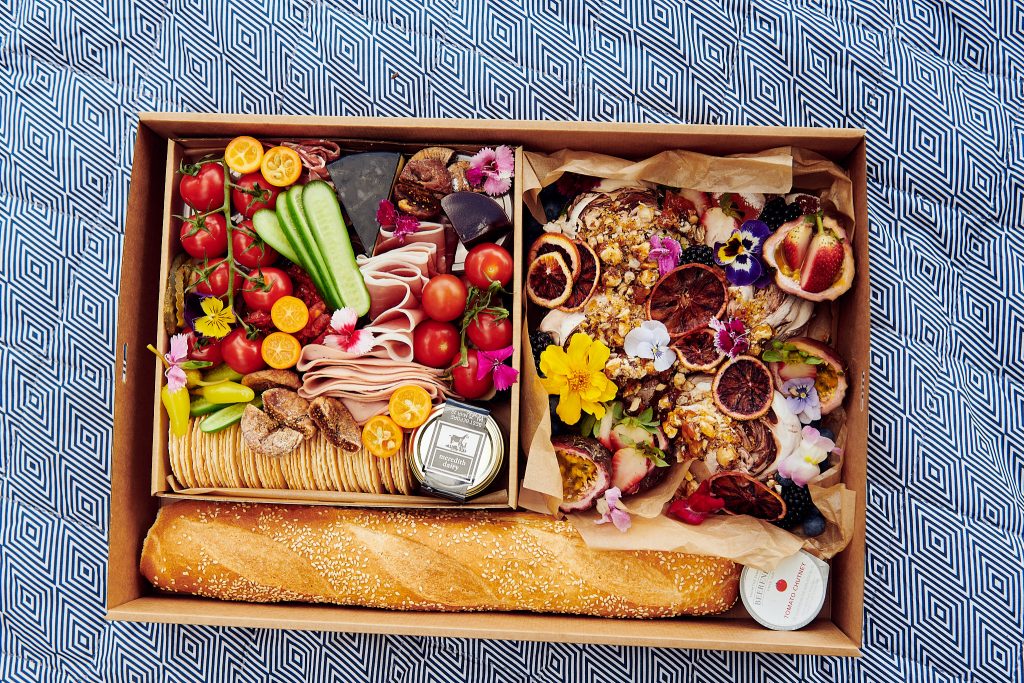 Known for their delicious and ‘Instagrammable’ gourmet grazing boxes, The Cooks Larder uses quality Aussie produce and ingredients, and creates each box fresh daily to ensure quality is never compromised and always beautifully packaged. The two person picnic hampers will include three Australian cheeses, crackers, charcuterie selection, hummus, dried and fresh fruits and vegetables, chocolate, Turkish Delight and giant meringues; with gluten free, vegan and vegetarian options available as well. For the four person hamper there will be four cheeses, crackers and bread, a large charcuterie selection with paste and relish, dried and fresh fruits and vegetables with Turkish Delight and giant meringues.
